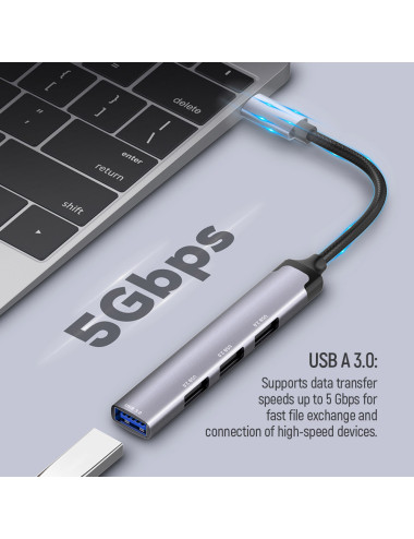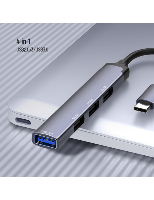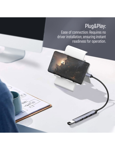 USB 2.0 Hub, 4-Port | 4-in-1 Docking Station | USB Type-C OTG 3-Port HUB and Card Reader | Charging Station |