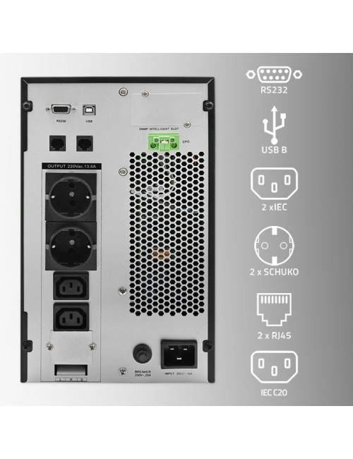 Qoltec Uninterruptible Power Supply (UPS) | 3kVA | 3000W | Power Factor 1.0 | LCD | EPO | USB | Online