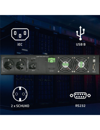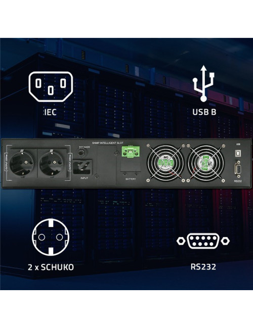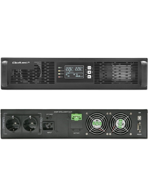 Qoltec Uninterruptible Power Supply (UPS) | 2kVA | 2000W | Power Factor 1.0 | LCD | EPO | USB | Online