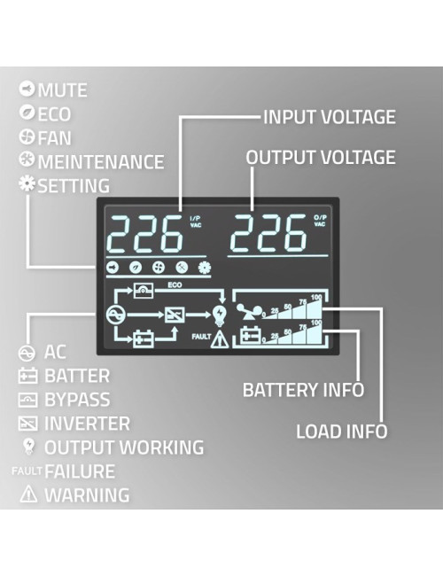 Low battery alarm, Overload alarm | |||