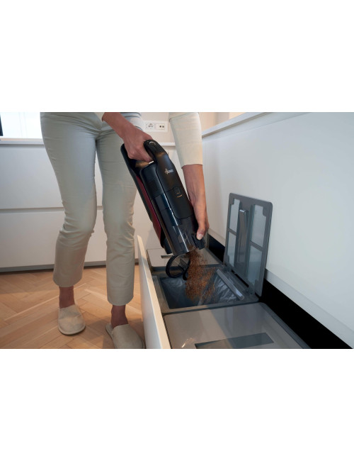 Do not use in damp conditions or on a wet surface. | The hoover contains electrical components and must not be disposed of in the regular rubbish bin. | Do not use in damp conditions or on a wet surface. | |