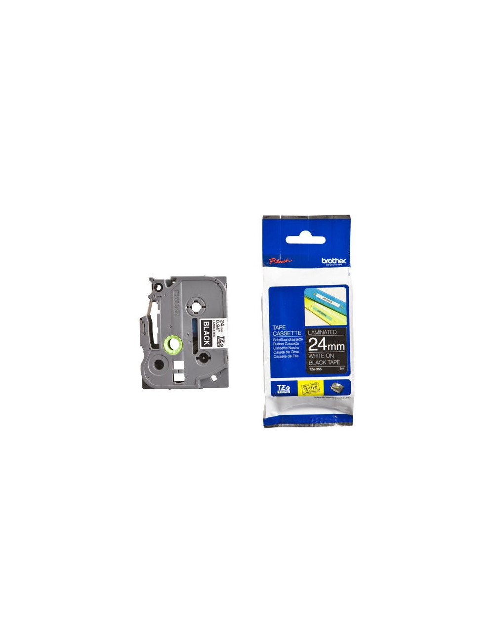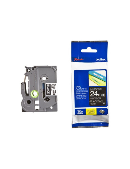 Brother TZe-355 (TZE355) Laminuotos ženklinimo juostos kasetė, White On Black 24mm, 8m
