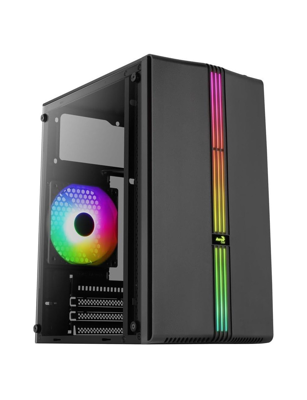 Korpusas su šviečiančiais ventiliatoriais